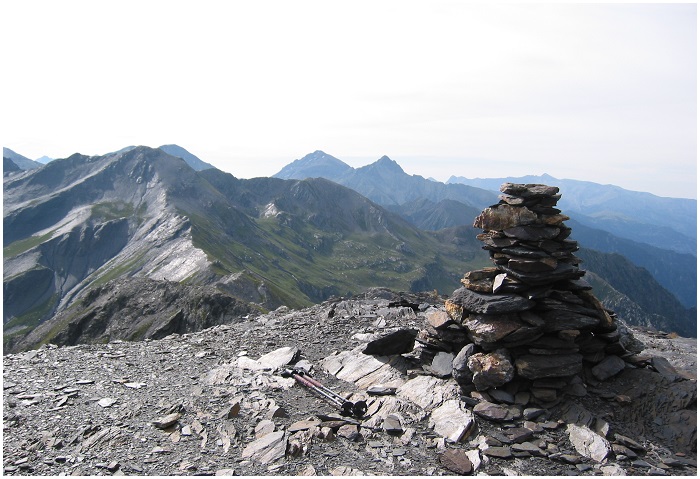 minerai sont masqués par l'arête est du pic.Le reste descend
