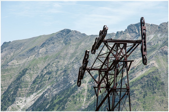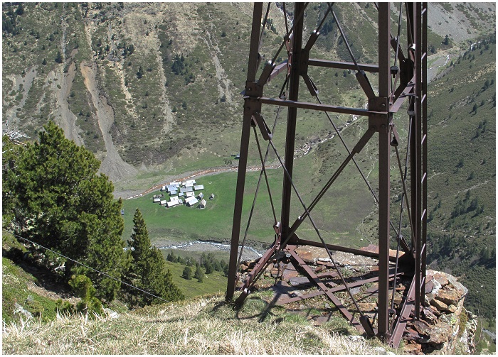 col) d'Héchempy., 2454 m. Le câble aérien franchit la
