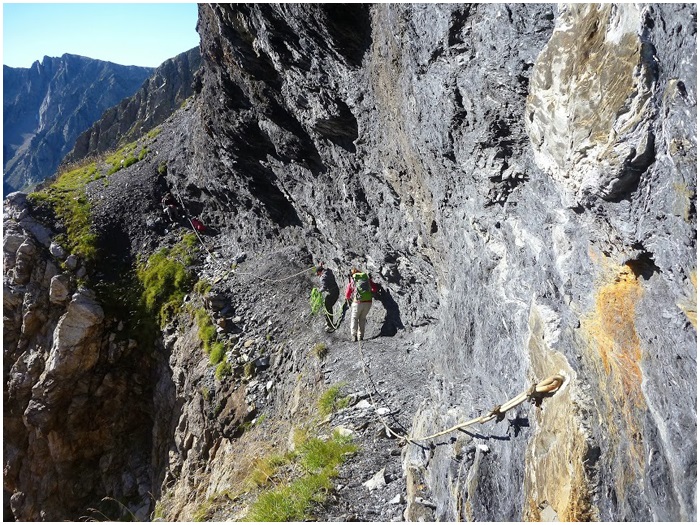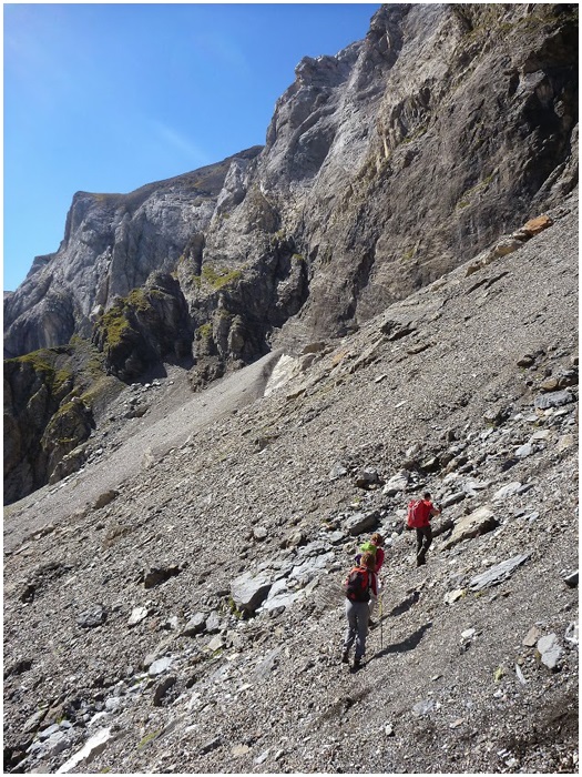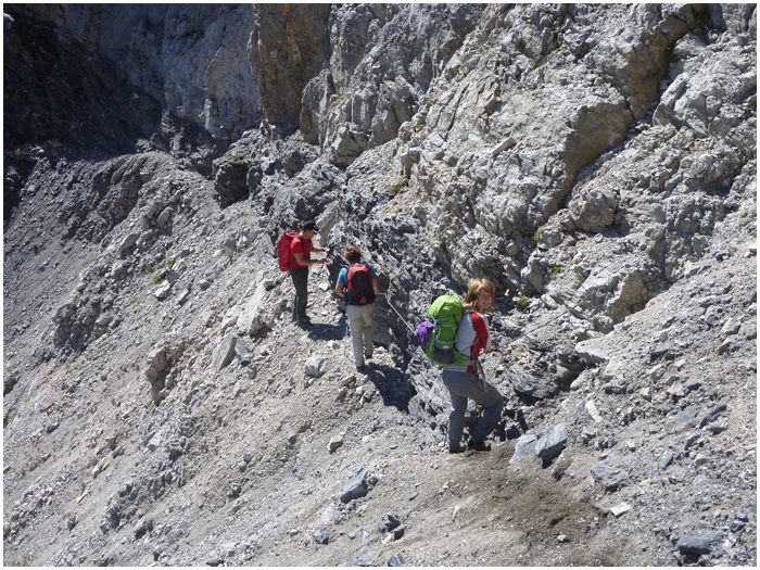 la région de Barroude, la traversée du cirque par la corniche,