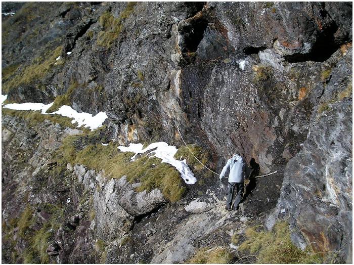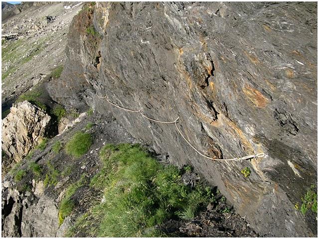 main courante, planté dans la falaise d'ampélite (photo