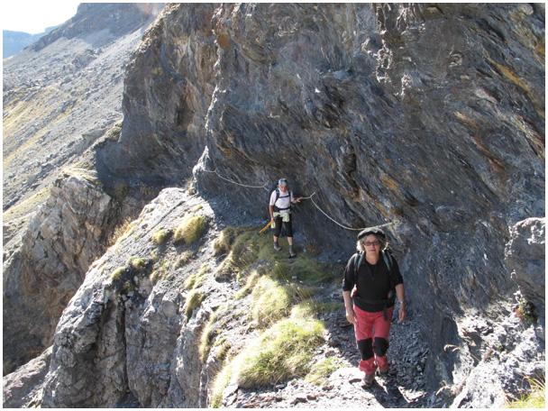 Dans ce long passage, où la vire, soutenue par la falaise de calcaire