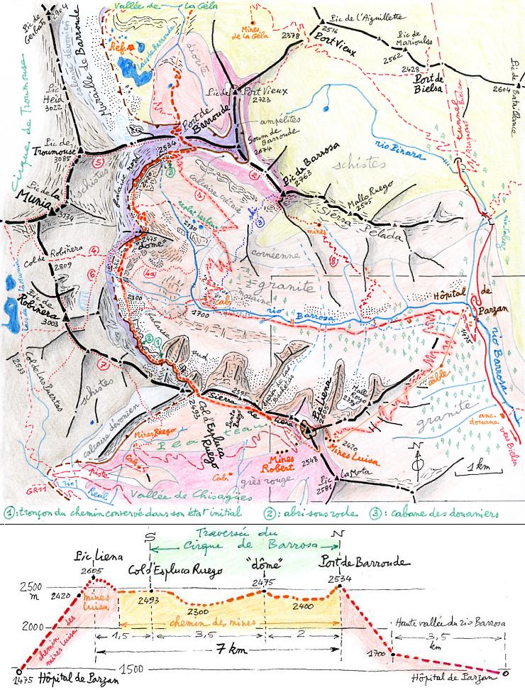 des mines, et le retour par le fond du cirque et la vallée du rio