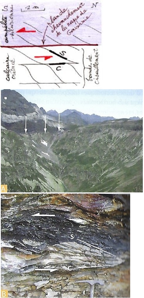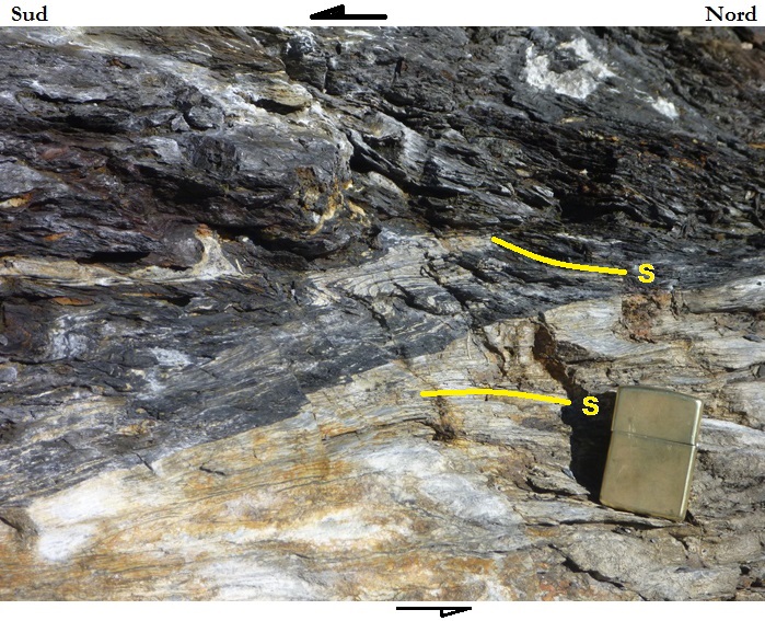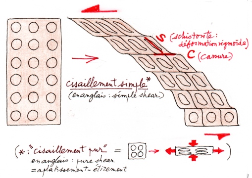 la fois des cassures (C) et de la shistosité (S, d'allure sigmoïde),