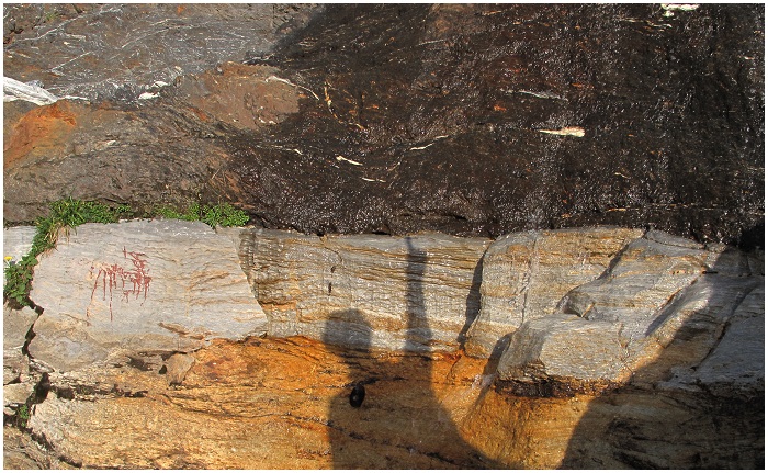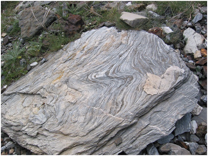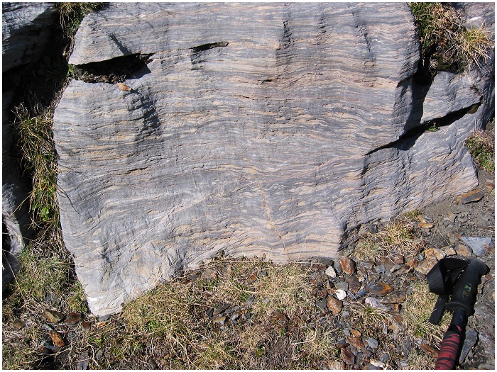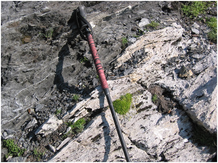 gauche) montre de tels plis dans la couche d'ampélites qui forment