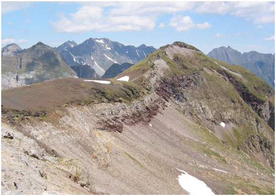 de la nappe de Gavarnie (ampélite allochtone en haut, calcaire