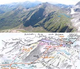 la haute vallée de La Géla, avec calque explicatif.