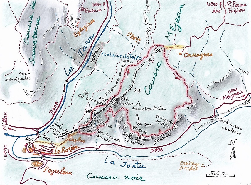 côté Jonte, et modelant côté Tarn le gros rocher