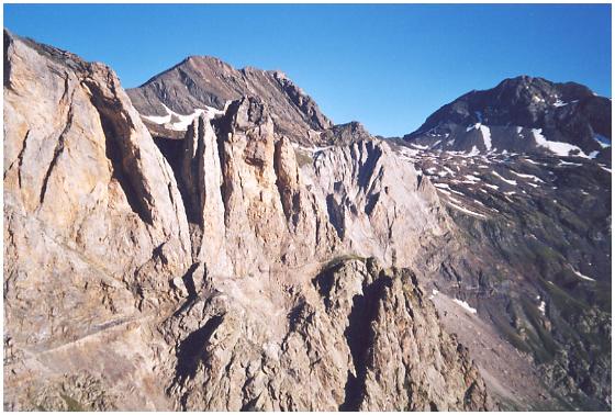 sud du cirque, où la vire du chemin des mines est bien visible.