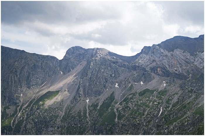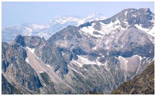 falaise sud, vue, fin juin, des pentes sud-ouest du pic Barrosa.