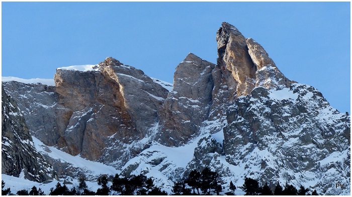 qui hérissent la partie haute de la falaise sud du cirque, taillée