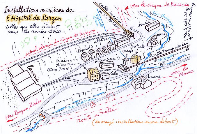 (avec calque explicatif ci-contre) du site auquel l'Hôpital de Parzan