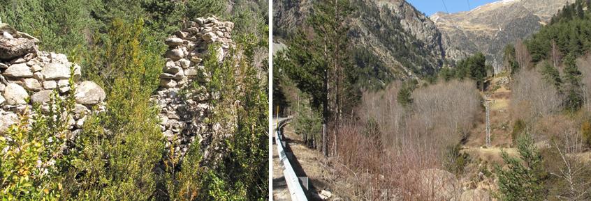 sur la "Casa Bosar", à gauche, et les ruines du laboratoire,
