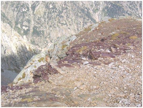 Plus haut, sur le sommet, on marche sur des schistes bruns