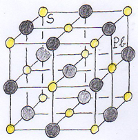 les atomes de plomb (Pb : 4 valences +) et de soufre (S : 2 valences -) s'inscrivent