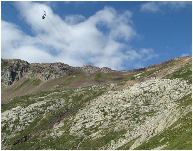 2420 m. d'altitude) dans la face est du pic Liena , vue du sommet du