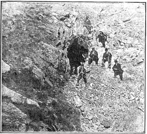 PHOTO ancienne, datant de 1924, d'une des galeries des mines Luisa. (Photo extraite d'un article de Romero Ortiz de Villacian (José), "Los filones de galena de Bielsa y Parzan"paru dans le Boletin oficial de Minas y metalurgia", año XIII, n° 150, Madrid, novembre 1929). |