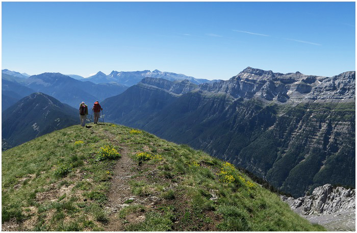 randonneurs, entre pic Cuezo (à gauche) et pic Montinier.
