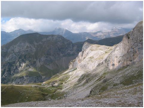 de l'arête calcaire (la punta Estiveta, 2281 m.), grisâtre, par