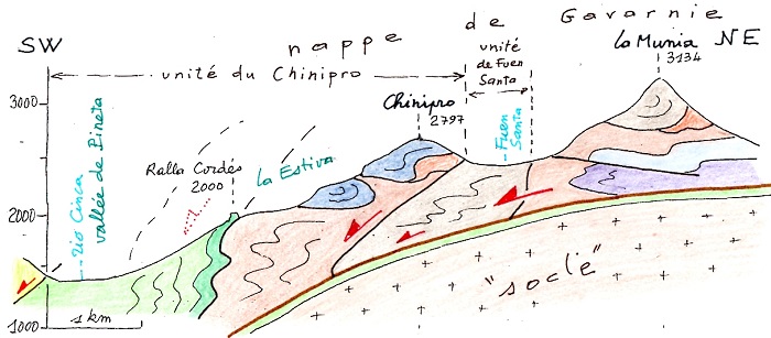 au pic de Chinipro (remarquer le "S" dans les terrains carbonifères