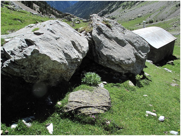 de calcaire, juste au-dessus de la cabane de Barrosa, apportés