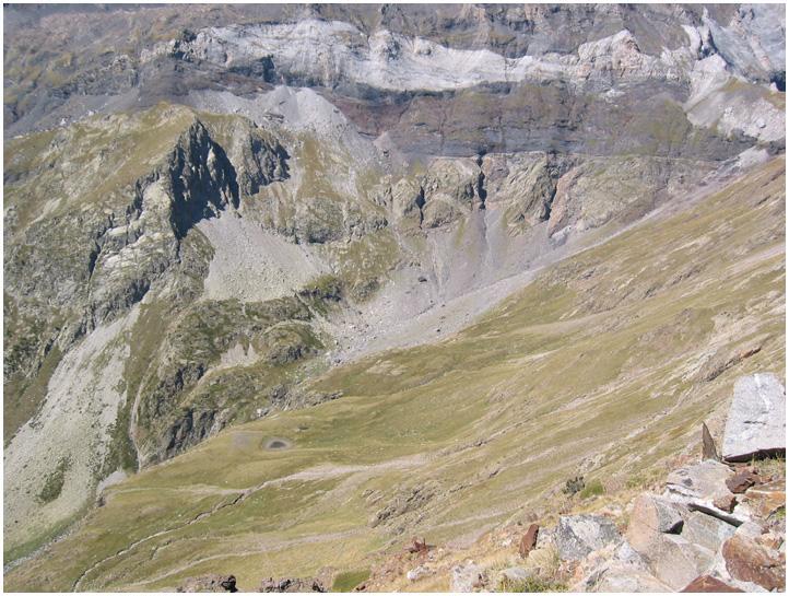 bas de la falaise nord du cirque, qui constitue le cirque glaciaire