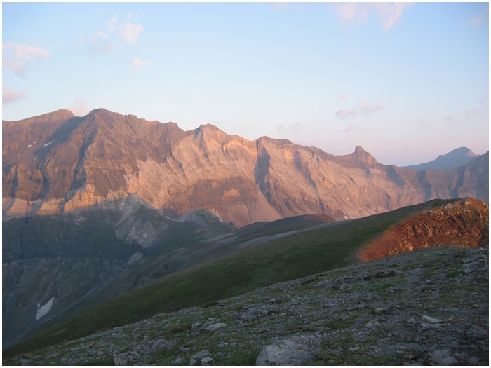 l'ouest) sur la muraille de Barroude entre le pic Heïd à
