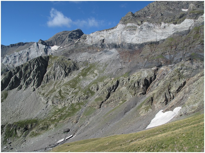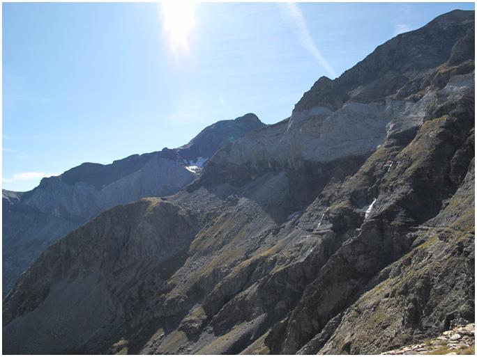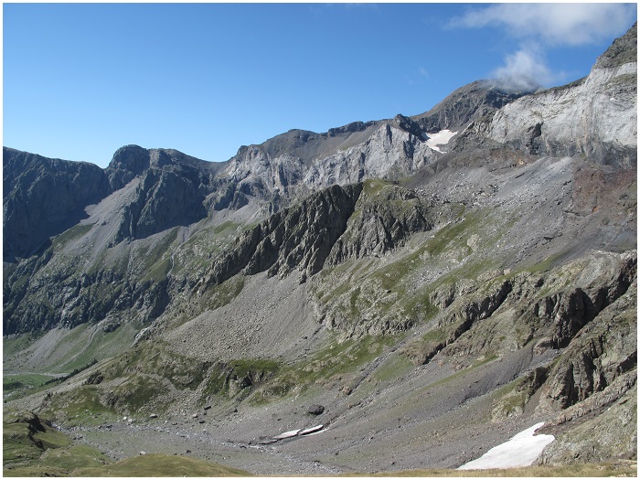pic de Troumouse, à la jonction de la falaise nord du cirque