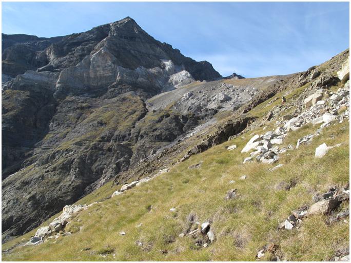 A partir du replat herbeux jusqu'au port, le sud du cirque est