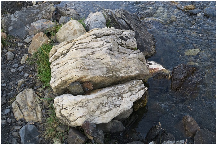 la faveur d'une grande diaclase (comme c'est le cas pour les gros blocs de