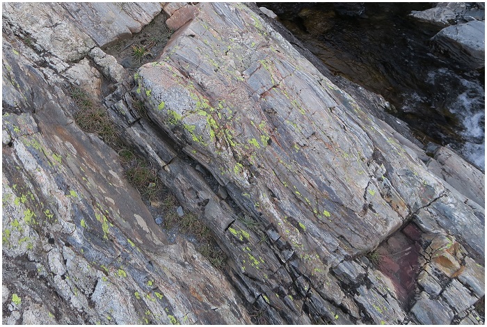sombres d'une roche métamorphique et les lits claits irréguliers,