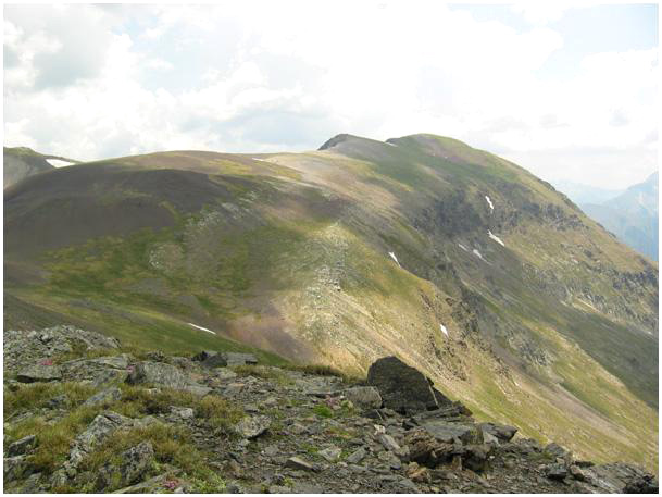 pentes sud-ouest régulières du pic, au deuxième plan