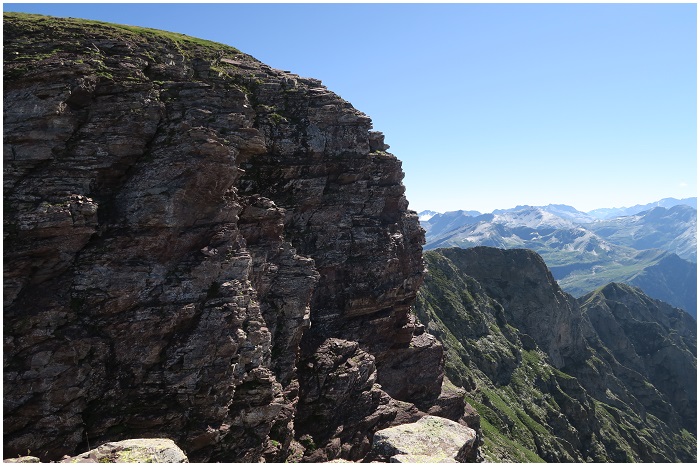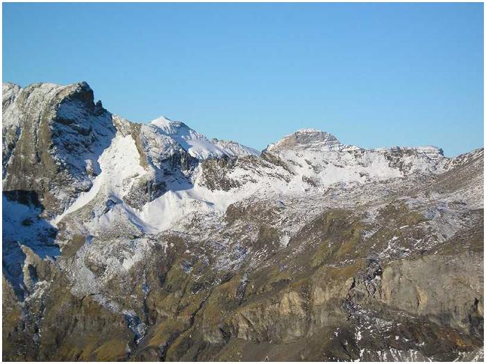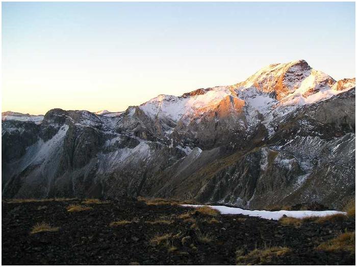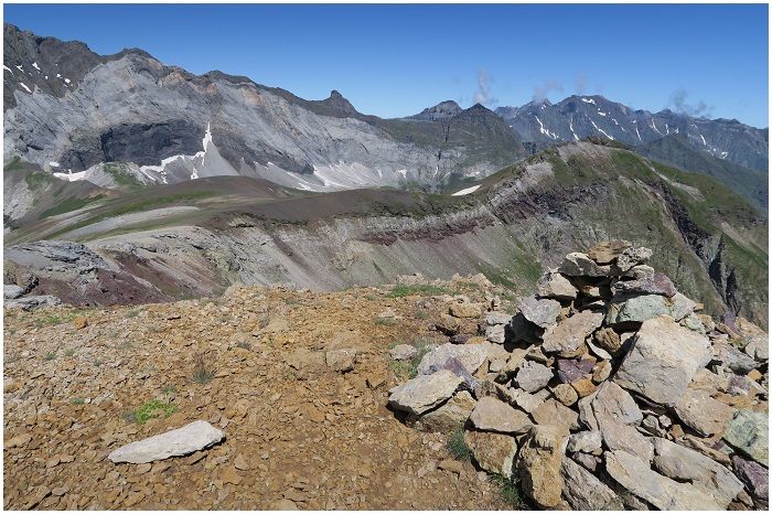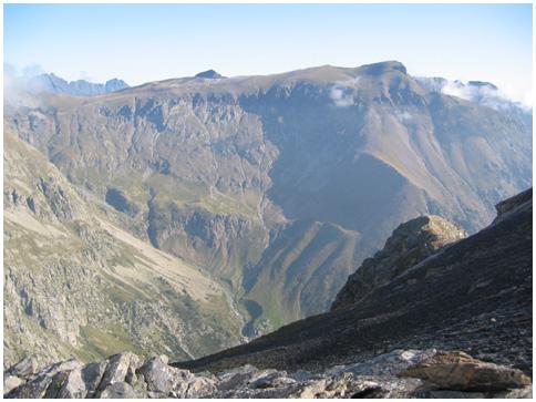 de la falaise sud du cirque. Son sommet (2763 m) est au bout d'une longue