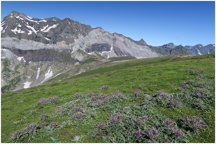 ; en toile de fond : à gauche la falaise nord du cirque de