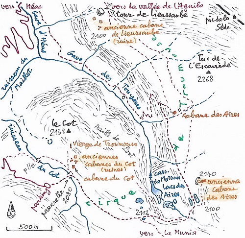 des deux cabanes, proches de la cabane du Cot, dans la partie sud du cirque