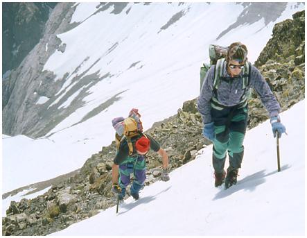 une pente assez raide, on gagne obliquement la grande selle neigeuse ; au