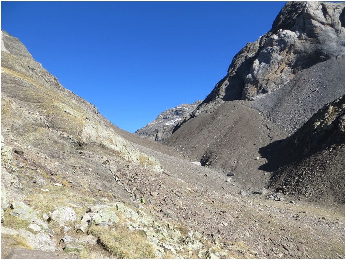 le fond du cirque jusqu'au replat herbeux, par le sentier du port de Barroude,