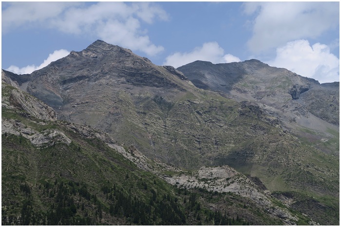 la falaise calcaire à la partie schisteuse du pic, qui est elle plus