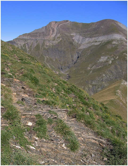 sur l'arête sud-ouest du pic Chiniro et sur le synclinal couché.
