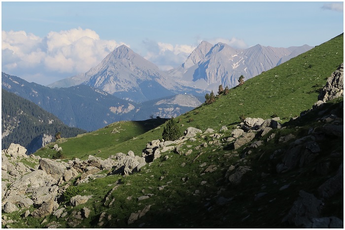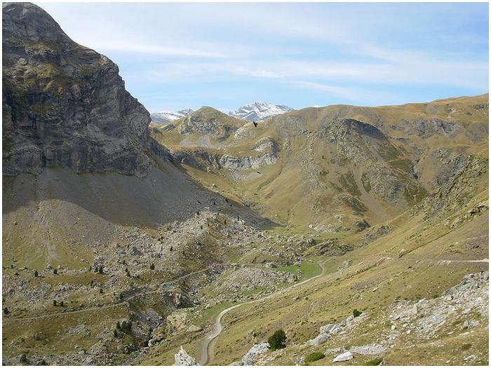 de l'image). En haut et à droite se profile le massif du Cotiella.