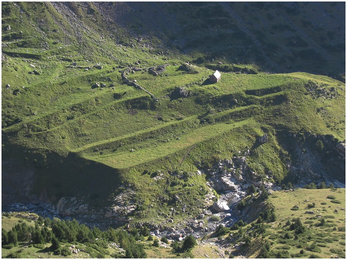 vers 1700 mètres d'altitude, au milieu d'anciennes terrasses de