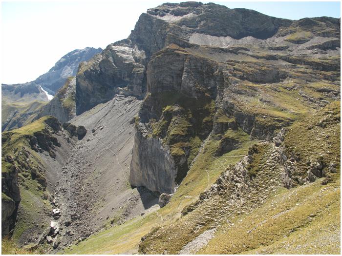 la falaise sud du cirque de Barrosa qui matérialise le plan de chevauchement