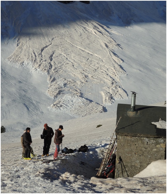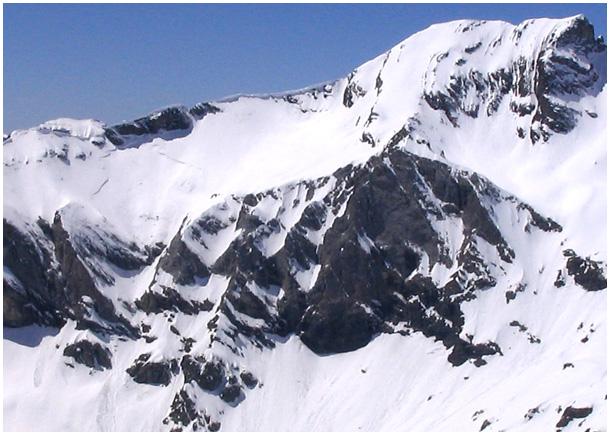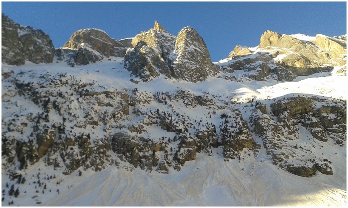 rocheuse de l'arête, le départ d'une grande avalanche
