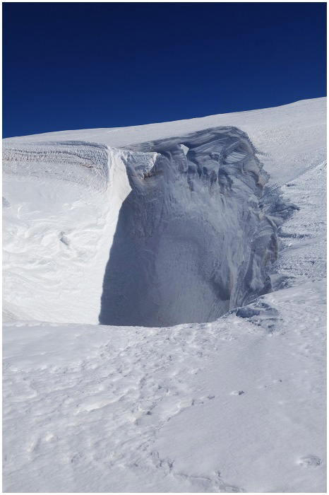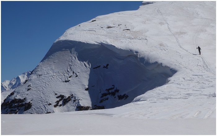 Celle-ci est ourlée d'une corniche formée par la neige apportée