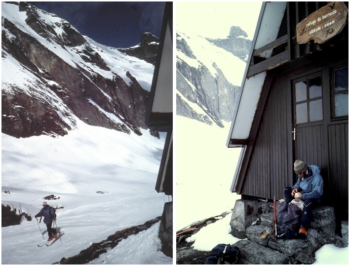 A droite : devant l'entrée du refuge (fermé