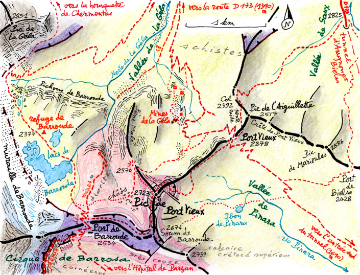La Géla passant par le pic Barrosa et le pic de Port Vieux.