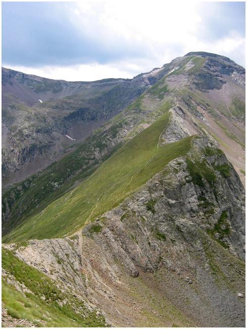 sentier qui longe d'abord l'arête nord-est du pic, versant Pinara, puis