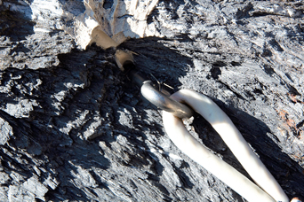 la vertigineuse vire et à travers les éboulis de la falaise