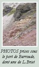 - On peut ajouter à ces traversées du cirque par le chemin des mines illustrées par des photos, celle effectuée dans le sens nord-sud en 2013, les 14 et 15 septembre, par M. Louis de Pazzis (co-animateur de l'association de géologie Géolval) avec trois compagnons de randonnée au cours d'un circuit à partir de l'Hôpital de Parzan, avec coucher au refuge de Barroude atteint par le fond du cirque et le port du même nom, et le lendemain la traversée du cirque par le camino de Las Pardas entre le port de Barroude et le col d'Espluca Ruego, puis la descente par le chemin Luisa : cliquer ici pour ouvrir la page contenant ces images (ou sur un lien de la page qui est accessible en cliquant sur la vignette ci-dessus)
