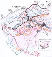 de la face ouest sur laquelle il indique l'itinéraire qu'il a suivi