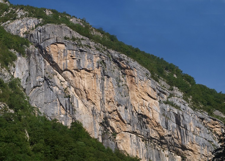 un pli anticlinal (qui est aussi un pli-faille) dans le calcaire